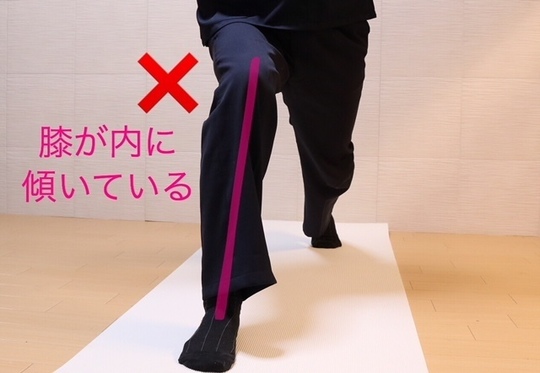 膝と足首の位置が正面から見てまっすぐになるようにおこなってください。
