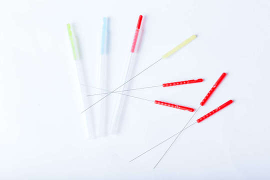 完全ディスポの使い捨て専用の鍼を使用します。注射針よりも遙かに細い髪の毛ほどの鍼を使用しますが、細ければ細いほど痛みを感じにくい訳ではありません。当院では最も痛みの感じにくい太さの鍼を施術部位や患者様の体型にあわせて使用致します。