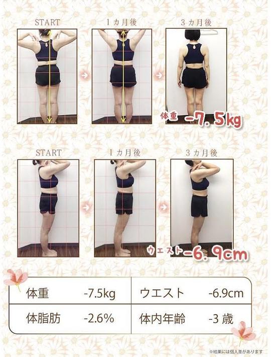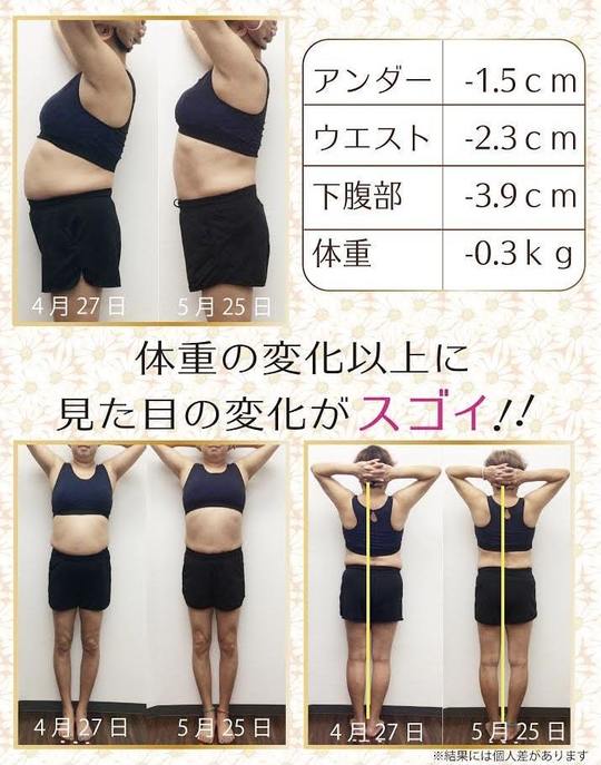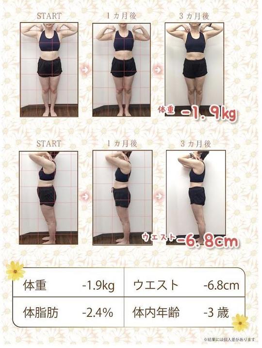 女性のスタッフさんがトレーニングや食生活のアドバイスもしてくださりダイエットのモチベーションも上がってしっかりと結果を出すことができました。夫も「こんなに効果が出るとは思っていなかった。次は俺もやりたい」と言ってくれて嬉しかったです。