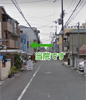 青い看板が当院です。