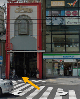 「近商ストア」を左手にして、まっすぐ高架下へ向かいます。