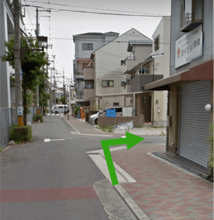 矢野内科さんの筋を過ぎて2つ目の筋に「ダイショウ建装」さんがあります。その角を曲がります。