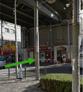 高架下の横断歩道を渡ります。