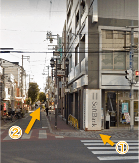 横断歩道を渡り、「ソフトバンク」さんを右手にまっすぐ進みます。
