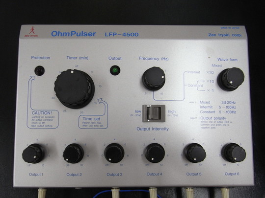 SSPとは『Silver Spike Point』の略で、金属製の突起をピンポイントでツボに置き電気を流すことができます。鍼のように刺すことなく、皮膚上からツボに直接低周波の電気刺激を送ることが出来る機械です。